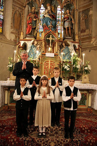 Krisztus mennybemenetelének ünnepén öt család iskolás gyermek lehetett elsőáldozó a Fő téri templomban. A meghatóan ünnepélyes, melegszívű szentmise után az iskolában láttuk vendégül az elsőáldozókat az ilyenkor szokásos közös reggelin.